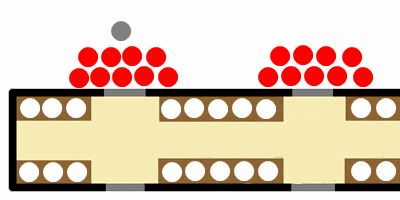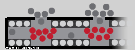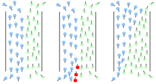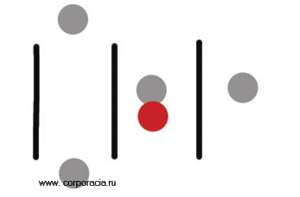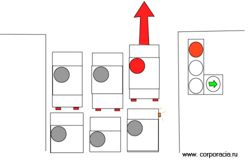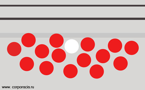 Два потока людей движущихся в разных направлениях неминуемо придут к "самозаклиниванию". Ситуация слева представляет неустойчивое равновесие, достижимое только в идеальном мире. Достаточно найтись паре дятлов и все будет как на правой картинке, а там уже равновесие устойчивое.
