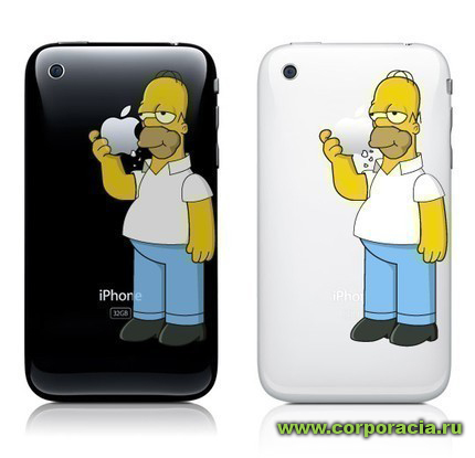 Один из вариантов ответа на этот таинственный вопрос можно найти в интернет-магазине Etsy. Всем желающим предлагается приобрести забавные стикеры для iPhone со всем известным Гомером Симпсоном, аппетитно жующим недостающий кусок эмблемы американской корпорации.