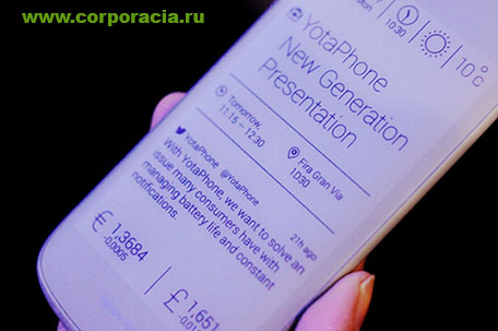 Сегодня, надо сказать, эти характеристики кажутся слабоватыми, так что, будем надеяться, мы увидим некоторые модификации, тем более, что судя по изображениям из официального аккаунта YotaPhone в Twitter дизайн смартфона с момента анонса совершенно не изменился.