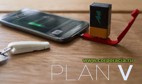 Plan V – это компактнейшее зарядное устройство, которое не помешает даже на брелоке для ключей. Plan V играет роль своеобразного адаптера, позволяющего заряжать смартфон или планшет от обычной 9-вольтной батарейки. Батарейка размещается на адаптере и он вставляется в смартфон. Разработчики уверяют, что одной батарейки хватит на 4 дополнительных часа работы вашего гаджета.