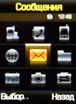 пикселей, отображение 262 тысяч цветовых оттенков. Телефон по умолчанию оформлен в тёмных, почти чёрных тонах (тема рабочего стола и оформление меню). Но