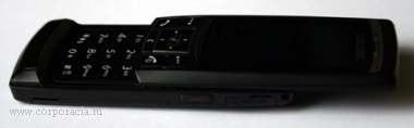 слайдер. Основная телефонная клавиатура совершенно плоская. Выступают только разделительные бортики между горизонтальными рядами кнопок. Русских символов на телефоне нет (сэмпл?), а сами кнопки нажимаются чётко и с ощутимым кликом. Для толстых пальцев они не очень удобны. Для более менее изящных – вполне.
