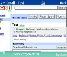 интерфейсом Gmail, который специально предназначен для мобильных устройств. По функциональности он напоминает