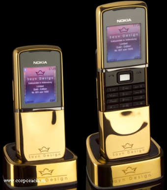 Дизайнерская компания Sayn Design из Германии выпустила ограниченную серию золотых телефонов Nokia 8800 Sirocco Edition , каждый из которых продается за $3450. Аппарат реализуется через eBay