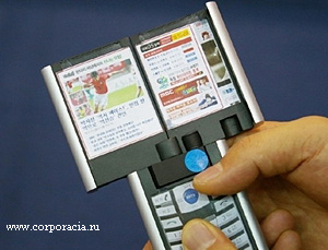 На Сеульской Международной Ярмарке Изобретений корейским изобретателем был представлен двойной LCD мобильный телефон. Экран у мобильника раскрывается как книжка и выглядит внушительно