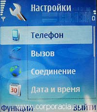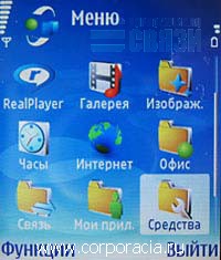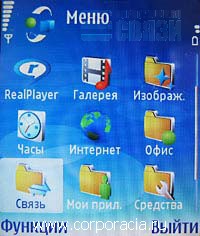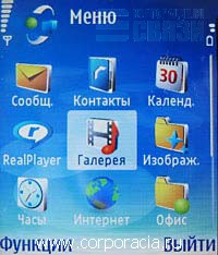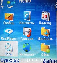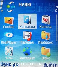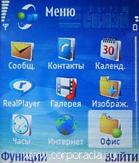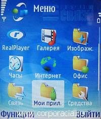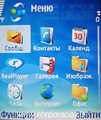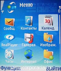 Аппарат построен на Symbian 8.1a, следовательно, интерфейс в целом унаследован от Symbian 8.0 аппаратов (6630/6681/6680), всё тот же «рабочий стол» (который, почему-то, называется «Активный режим»), та же организация меню. Нововведений по меню в Symbian OS здесь нет, Nokia лишь перерисовала иконки под более высокое разрешение дисплея (кстати, кое-где она это сделать забыла). Далее – небольшое описание меню по пунктам.