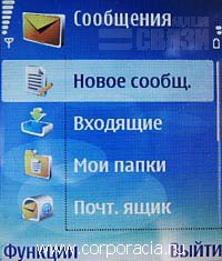 Сообщения – здесь происходит работа с SMS, MMS, email. Ввод на аппарате очень удобный, он не тормозит, позволяет набирать сообщения очень быстро. Аппарат, само собой, поддерживает SMS/MMS шаблоны, имеет большую память для хранения сообщений.