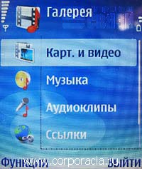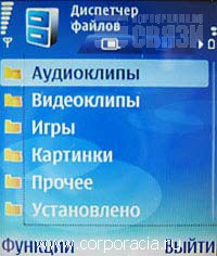 Галерея – здесь находятся все мультимедийные файлы, что закачаны в телефон или на карту памяти, рассортированные по папкам. Само собой здесь же их можно просмотреть/прослушать. Объём памяти телефона составляет 32Mb, в комплекте идёт карта памяти RS-MMC 3.0V/1.8V на 64Mb.