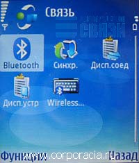 Связь – меню синхронизации. Bluetooth – реализация Bluetooth в аппарате очень качественная, N90 хорошо соединялся с другими устройствами, скорость передачи данных высока, она достигает 45 kbps, на данный момент такая скорость является эталоном.