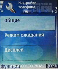 Настройки – основные настройки аппарата, дисплея, звонковых сервисов, сети. Здесь выбирается язык ОС, основной язык ввода (можно изменить при вводе какого-либо текста при нажатии на клавишу с карандашом), включается/отключается T9, устанавливается приветствие, назначаются софт-клавиши. Тут же устанавливаются обои на дисплей, регулируется сила подсветки (она активная, с датчиком освещения, как на 6630/6681/6680). Здесь же настраиваются параметры GPRS, установки сети и многое другое.