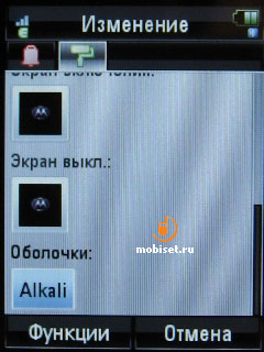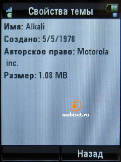 В данной модели Motorola уже есть 3 темы оформления. В состав каждой из них входит один из трёх базовых скинов. Кроме этого пользователь может установить звуки для сигналов событий и звонков (не путать с подобными настройками в «профилях вызова»), а также обои и скринсейверы. Также легко можно поменять заставки включения и выключения телефона. При желании можно создать и свои оригинальные темы, но для этого придётся выбрать один из трёх стандартных скинов.