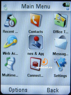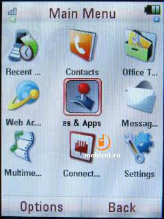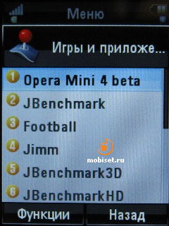 просмотреть свойства java-приложений. Все программы могут быть сохранены как в самом сотовом аппарате, так и в карту памяти. Важно отметить такое качество, как настоящий полноэкранный режим, т.е. отсутствие ненужных полосок сверху и снизу.