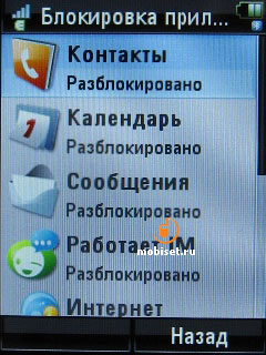 Остальные настройки сводятся к изменению настроек переадресации, быстрого и фиксированного набора, сети, смене паролей и блокировке некоторых приложений и тому подобное. Одной из наиболее важных опций является возможность не выходить из текущего приложения при закрытии слайда телефона.