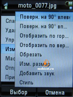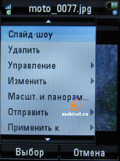 слайд-шоу и редактировать изображения. Для того, чтобы выйти в полноэкранный режим надо всего лишь нажать на кнопку выбора и изображение автоматически повернётся на нужный угол, чтобы как можно более крупно разместиться на дисплее. Также положение изображений на эране можно изменять нажатием кнопок вверх и вниз при просмотре. Более того, есть возможность панорамирования и масштабирования рисунков. При просмотре изображений в полноэкранном режиме с помощью навигационной клавиши можно прокручивать увеличенное содержимое картинки. С помощью этого приложения можно также обрезать картинку, изменять её стиль или масштабы. Что бы вы ни делали с картинками, все будет выполняться на приличной скорости без притормаживаний.