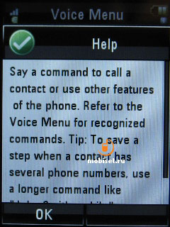 Можно включить такую опцию, как «Говорящий Телефон», или «TalkingРhone». Сегодня эта опция есть почти во всех Linux-телефонах марки Motorola. Огорчает тот факт, что пока она не русифицирована, и все команды нужно произносить на английском языке. С помощью этой функции MOTORORK Z6 может озвучивать набираемые цифры, пункты меня или даже смс-сообщения! Все действия озвучиваются мужским голосом, качество речи весьма высокое, так что понять эти фразы не составит большого труда. Голосом можно запросить степень приёма сети или заряда аккумулятора, узнать время и получить полную информацию о входящих и неотвеченных звонках. Еще с помощью этой функции можно вызывать абонента по имени контакта в телефонной книге, менять профили и стили оповещения и запускать программы. Чаще всего (не смотря на возможный акцент, ведь команды нужно произносить на английском) речь определяется точно. Аппарат еще раз повторяет команду или, в случае ошибки, просит повторить ее. Самое интересное заключается в том, что для этой функции не требуется записывать каждую команду и контакт – распознавание не зависит от голоса и интонации говорящего. Данное приложение выполнена очень качественно.