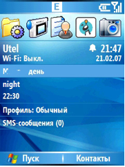 Оценить его состояние можно, посмотрев на фото. Напоминаем, что телефончику уже год. Клавиши не стерлись, царапин на экране не видно, и джойстик работает хорошо. В общем, состояние телефона после года использования очень даже неплохое. Немного стерлась серебристое покрытие на одном из углов (нижний правый – наверно где-то зацепил) и на крышке аккумуляторного отсека. Единственное, что немного пострадало – это правый нижний угол и крышка аккумулятора. Это могло произойти, когда телефон лежал на жесткой поверхности, и во время звонка сработал вибросигнал. И что очень порадовало, джойстик по-прежнему работает хорошо, без сбоев. Правда, иногда нужно чем-то чистить паз вокруг джойстика. Плохо то, что клавиши расположены очень близко к нижнему краю корпуса, а в целом, управлять смартфоном одной рукой очень просто и удобно. Я буду не права, если ничего не скажу про отличное качество дисплея рассматриваемой нами модели. Насыщенность и яркость цветов делают доступным чтение на солнце. И такого явления, как зернистость, здесь не наблюдается. Но, к сожалению, яркость экрана менять нельзя. В режиме ожидания на экране можно увидеть очень много полезной информации. Помимо стандартных показателей (оператор сети, зарядка батареи и т.д.) можно найти последние запущенные программы и приложения, запланированные встречи, количество сообщений и т.д. Впрочем, вы сами можете в этом убедиться: