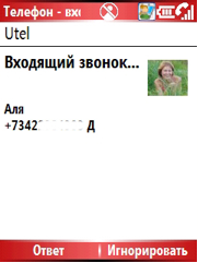 К каждому контакту можно добавить фотографию. Правда ее размеры нельзя назвать оптимальными. Во время звонка на экране появляется Фото (если оно есть), имя и номер звонящего вам абонента: