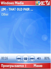 Функции узла Bluetooth несколько ограничены в данной модели телефона, потому что в системе установлены стандартные драйверы компании Microsoft. Например, чтобы работала Bluetooth-гарнитура, требуется установка дополнительных программ. Для того, чтобы скачать что-нибудь с компьютера с помощью беспроводной связи, нужно сначала установить Bluetooth-соединение с ActiveSync. Также нельзя принимать файлы по Bluetooth сразу на карту памяти. Поэтому размер переданной вам информации ограничивается объемом свободной памяти на самом телефоне. Но эта проблема легко решается – достаточно просто установить программу, которая будет спрашивать, в какую папку вы хотите сохранить принятый файл. Насчет Wi-Fi ничего сказать нельзя, просто потому, что за время пользования телефоном его протестировать не пришлось. Все ограничилось лишь проверкой и определением беспроводных сетей. При этом оказалось, что телефон с задней стороны нагрелся довольно-таки ощутимо. Как он будет нагреваться во время работы с Wi-Fi, можно только догадываться. Для воспроизведения музыкальных композиций установлен Windows Media Player: