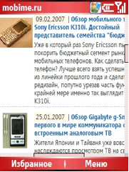 К сожалению, эквалайзер здесь не предусмотрен. Но в целом, проигрыватель справляется со своими задачами. Если во время прослушивания музыки вам поступил входящий звонок, то воспроизведение автоматически ставится на паузу, и по окончании разговора автоматически с нее снимается. Можно перевести воспроизведение в фоновый режим. Так он экономнее будет расходовать заряд аккумулятора. Также можно синхронизировать телефонную музыкальную библиотеку с музыкальной библиотекой компьютера. Обозреватель Интернет работает без каких-либо ошибок и претензий. И его тоже можно синхронизировать с его «старшим братом» Internet Explorer. Установок там тоже самый минимум. Все страницы видны также, как и на компьютере, только умещается там немного меньше: