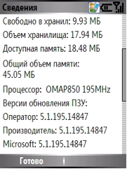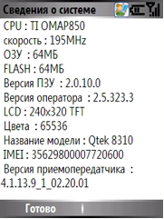 - Процессор: Texas Instruments OMAP850 200 МГц