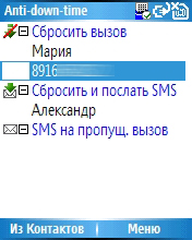 Antidown Time – это sms-автоответчик и черный список (поддерживающий, кстати, функцию фотоконтакта) в одном. Эта программка дает возможность отсылать уже написанные, или придуманные вновь смс на все вызовы, оставшиеся без ответа. Кроме того, она может создать «черный список». Тем самым, пользователь будет огражден от поступления нежелательных звонков.