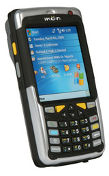 Эта модель используется (ну, по крайней мере, предназначена) для промышленного применения. И заказчик может выбрать по своему желанию операционную систему коммуникатора (CE.NET 5, WM6 Classic или WM6 Professional) и модули GSM/GPRS/UMTS. Также возможно будет оснащение iKon QWERTY-клавиатурой и сканером штрих-кода. А в основной, уже присутствующей комплектации имеются интерфейсы Bluetooth и Wi-Fi.