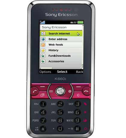 Поговорим сначала о модели К660. Этот телефон представлен как телефон для веб-серфинга (он водопроницаемый, поэтому с виндсерфингом путать не надо) из-за своей способности ориентировать свой экран горизонтально. Кроме того, он такие технологии, как HSDPA. Что интересно, при использовании браузера NetFront вам становятся доступны ранее скрытые кнопки. Еще одним любопытным фактом является возможность чтения RSS-лент (для этого есть специальное приложение).