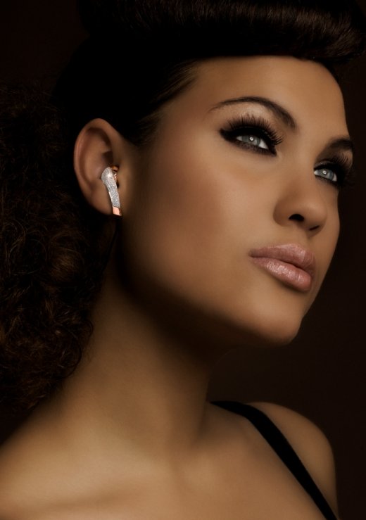 гарнитура iDiamond. Корпус здесь золотой, и украшен бриллиантами в 18 карат. Драгоценных камешков насчитывается 204 штуки.