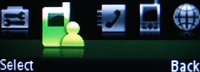 Как несложно было догадаться, меню в телефоне выполнено в виде горизонтальной строки иконок (естественно, речь идет о телефонном дисплее). Никаких надписей и расшифровок к иконкам нет. О том, что скрывается в данном пункте, приходится только догадываться.