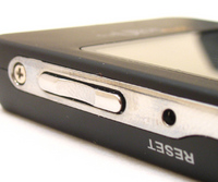 Поговорим теперь о боковых клавишах. На правой боковой панели расположены клавиши регулировки громкости и клавиша reset. Слева можно найти блокировщик клавиатуры. Под ним разместилась кнопка переключения режимов плеер/телефон. Отдельно остановлюсь на ползунке блокировке. Штука, без сомнения, нужная. Однако в этой модели ползунок скользкий и в темноте сложно его найти. К тому же, очень часто вместо ползунка под палец попадается кнопка переключения режимов.