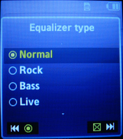 Сильная сторона модели – MP3-плеер. Интерфейс и организация его максимально приближена к большинству популярных плееров. Во время проигрывания музыки на экране отображается уровень заряда аккумулятора, уровень сигнала и прочая служебная информация. Кроме этого показывается иконка проигрываемого альбома, бегунок воспроизведения, имя файла, анимация, информация об общей длительности композиции и текущее время проигрывания, иконки эквалайзера, 3D, эффекта перемешивания и повтора.