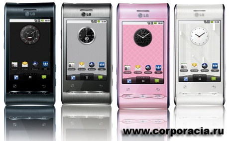 В продажу LG GT540 Optimus поступит в корпусах 4-х цветов: белый, розовый, черный и серебристый. В России приобрести смартфон можно будет уже летом.