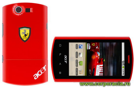 В магазинах сети «Связной» появилась спецверсия мобильного телефона Acer Liquid E. Acer Liquid E Ferrari выполнен в стиле престижного гоночной команды Ferrari и функционирует под управлением операционной системы Android 2.1. Девайс оборудован 3,5-дм сенсорым экраном и 5-Мп камерой.