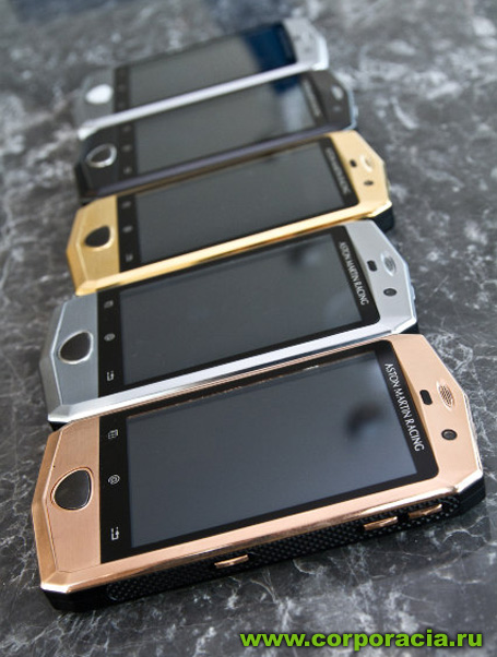 В марте этого года Aston Martin вместе с Mobiado, канадским сборщиком элитных мобильных телефонов, предложила Android-коммуникатор класса люкс Aston Martin Mobiado Grand Touch, технологические "внутренности" которого позаимствованы у Samsung Nexus S.
