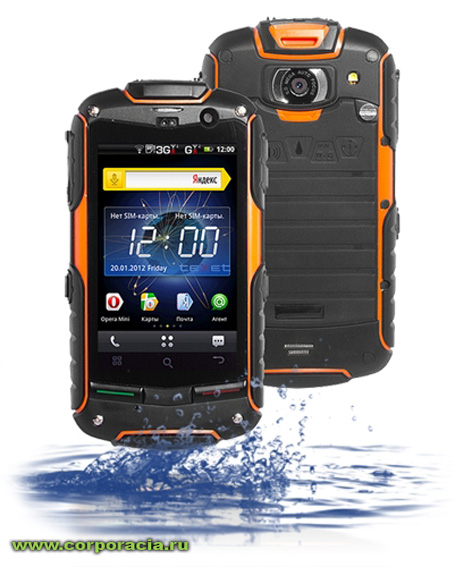 Основным преимуществом модели, безусловно, является защищенность. Телефон обладает не только толстым и прочным стеклом дисплея, прорезиненным корпусом, который прекрасно отражает удары, но и впечатляющей герметичностью – устройство можно искупать или помыть без угрозы для электронного содержимого.