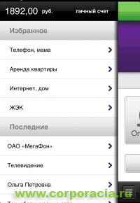 В меню приложения есть очень удобная вкладка "Избранное", с помощью которой можно создать свой собственный список часто осуществляемых платежей. Это значительно упрощает процесс. Достаточно добавить платеж в избранное и совершить денежную операцию можно практически мгновенно.