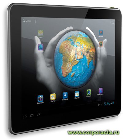 Хороший вариант в соотношении цена/качество/бренд. За последнее придется расплатиться отсутствием 3G и наличием только одной камеры, да и той 1,3 Мп. Кроме того, здесь существует та же проблема, что и у Ritmix, дисплей 9,7 дюймов, а разрешение 1024 на 768 точек. Зато имеется хороший 2-ядерный процессор ARM Cortex-A9 (частота 1 ГГц), графический ускоритель - PowerVR SGX540, который тянет не только видео, но и 3D-игры. Стоимость планшета – 8000 рублей.