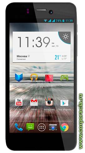 Теперь о начинке. Как мы уже сказали выше, она у Alpha Ice не слабая – 4-ядерный процессор MediaTek MT6589 (частота 1,2 ГГц) и гигабайт оперативной памяти, что позволяет смартфону не только без подвисаний справляться с типичными пользовательскими задачами, но и дает возможность комфортно играть в самые современные 3D-игры. Встроенной памяти, к сожалению, только 4 Гб, однако здесь, разумеется, в отличие от iPhone есть возможность расширить ее за счет простой microSD. На Highscreen Alpha Ice установлена достаточно свежая версия платформы Android, поддерживаются Gmail, YouTube, Play Market, Google Maps и т.д.