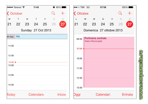 Российским пользователям повезло, а вот жителям стран, где время еще различается на зимнее и летнее, их девайсы на iOS 7 преподнесли неприятный сюрприз – перевод часов спровоцировал ошибку в приложении "Календарь".