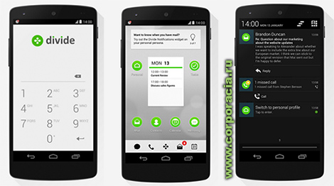 Одноименный сервис от Divide дает возможность разделять корпоративную информацию от личных пользовательский данных, а также осуществлять удалённое управление девайсами сотрудников. Например, IT-специалисты могут оперативно стереть корпоративные данные компании со смартфона, скажем, уволенного сотрудника, не затронув при этом его личный контент.