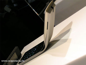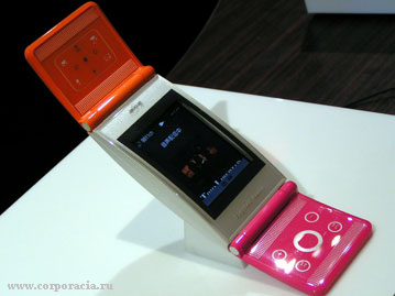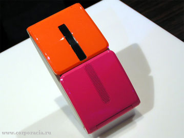Первая экспериментальная модель, не имеющая пока имени, выполнена с двумя активными флипами. Данная конструкция очень удобна, для тех, кто любит поиграть на мобильном телефоне, так как фактически в открытом состоянии, экспериментальный телефон больше напоминает джойстик с встроенным дисплеем.
