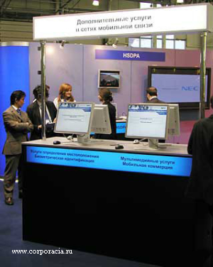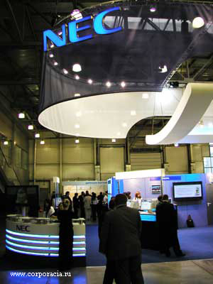 Стенд компании NEC на выставке "ИнфоКом'2006" привлекал внимание, как стильным дизайном, так и своим "премиальным" расположением - непосредственно рядом со входом в павильон и размерами. Сразу же становилось очевидно, что