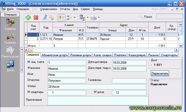 Системы, вычисляющие стоимость услуг связи для каждого клиента и хранящие информацию обо всех