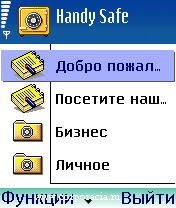 смартфоны Nokia семейства S60). Разыскиваем в этой папке иконку, изображающую жёлтый сейф, с надписью Handy Safe.