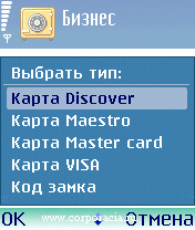 номер», «Список», «Страховой полис», «Телефонная карта», «Членская карточка», «Экстренные службы», «