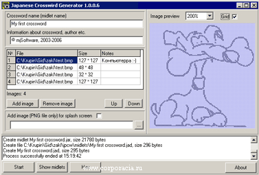 Программный комплекс Japanese Crossword Generator, о котором пойдет речь, создан как раз для владельцев сотовых телефонов, души не чающих в кроссвордах из Страны Восходящего Солнца. Дело в том, что он позволяет за считанные минуты создать серию классических черно-белых головоломок из любых картинок размером до 127 x 127