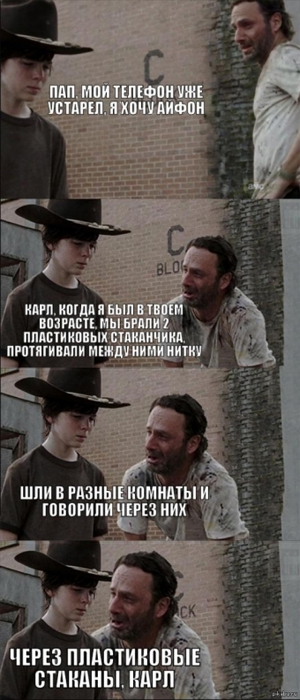 В комиксе используются кадры из сериала "Ходячие мертвецы", а персонажи мема - это главный герой истории, Рик Граймс, и его сын по имени Карл. Сразу мем популярность не обрёл: только в декабре 2013 года количество его поклонников в родных странах увеличилось после того, как был выложен пост "19 лучших отцовских шуток от Рика". В России же комикс начал набирать известность только весной 2015 года благодаря сервису Pikabu. Несмотря на то, что его популярность уже идёт на спад, он всё равно продолжает радовать пользователей.
