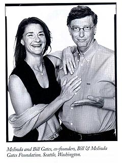 Гейтсы активно занимаются благотворительностью – Биллу с женой принадлежит благотворительный Фонда Билла и Мелинды Гейтс. В 2005 году британский кабинет министров по иностранным делам объявил, что за огромный вклад в предприятия Британии и преодолению нищеты в мире, Гейтсу будет пожалован титул Рыцаря-Командора Ордена Британской Империи.